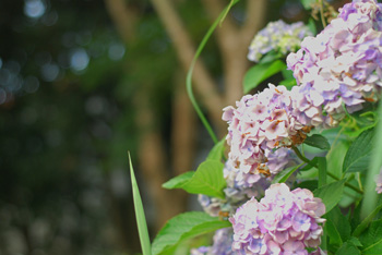 ポメと花とせみとアジサイ