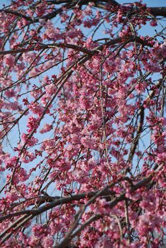 少し風があるものの、春らしいぽかぽか陽気。枝垂れサクラは満開に近い咲き方。