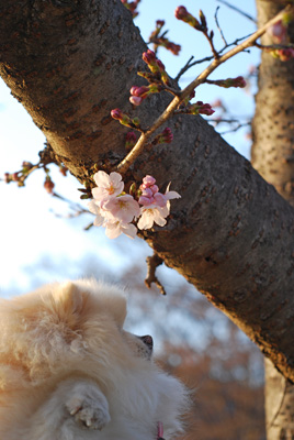 桜開花とポメ